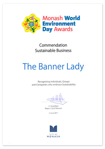 The Banner Lady is proud to recieve this recognition and is continually working towards maintaining an environmentally friendly and sustainable business.